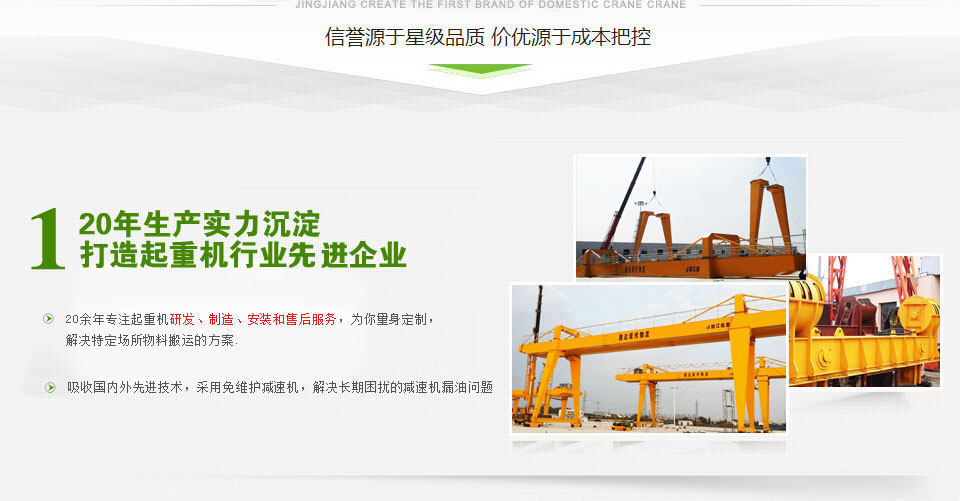 靖江市起重設(shè)備廠家直銷懸臂起重機(jī)、固定式懸臂起重機(jī)、單雙梁橋式起重機(jī)、簡易門式起重機(jī)、電動葫蘆門式起重機(jī)型號齊全,價(jià)格合理 - 座落在美麗富饒的江浙平原,魚米之鄉(xiāng)--江蘇省靖江市,位于長江之濱。毗鄰江陰長江公路大橋, 與江陰、張家港隔江相望,緊鄰上海、南京、蘇州、無錫等發(fā)達(dá)的大中城市,經(jīng)濟(jì)環(huán)境和地理位置得天獨(dú)厚。 緊靠京滬、寧通高速公路 公路和水路交通極為便利。